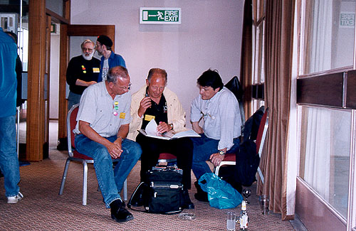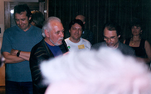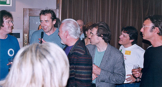 Mark entertains the masses with a rhapsody about his various motor-cars. Pictured are Geoff Whitehorn, Mark Brzezicki, Gary Brooker, Matthew Fisher, Martin Awsop and Matt Pegg. |