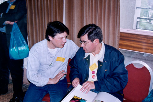 Martin (from Spain) discusses the collection with António (from Portugal) |