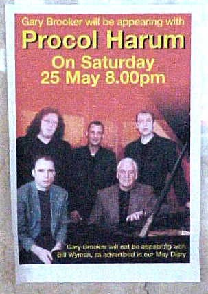Fairfield have Procol Harum listed on their main poster, and the gig is advertised in rotation on their foyer TV display. They also exhibit this sign in the Box Office, reminding patrons that 'Gary Brooker will not be appearing with Bill Wyman, as advertised in our May Diary' … the Rhythm Kings play Croydon very close to the Procol date. |