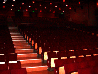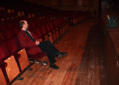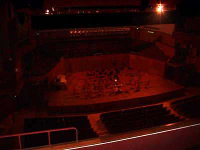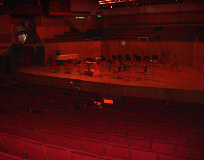 It was hard to get decent pictures of the Fairfield concert auditorium in the available light, but you may be able to gather something of what is in store: note one fan already test-driving the seat he is renting for 25 May. |