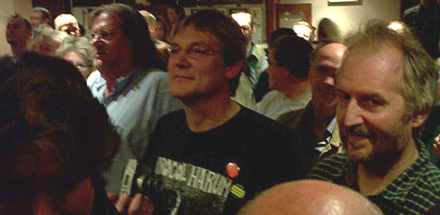 Thomas Raa Olsen and John Lock among the many fans looking up toward the end of the Lounge where Procol Harum have appeared |