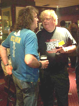 Socialising in the bar ... to the left, Geoff Whitehorn and webmaster Jens Anders Ravnaas; above, Mrs Betty Fisher, mother of the organist |