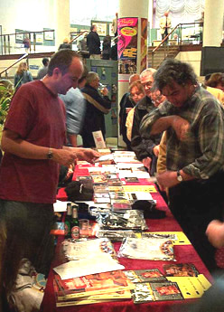 John Grayson does a brisk trade on the Shine On merchandise stall. Buy his merchandise online from here |