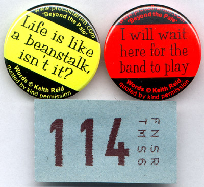 Procol Harum lyric-badges to wear to the concert (see above) (thanks, Keith) |