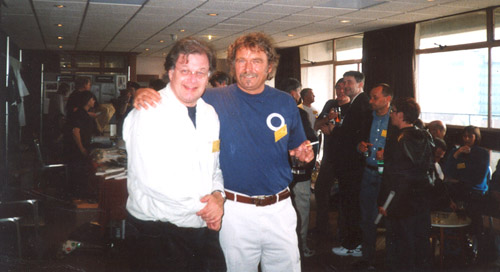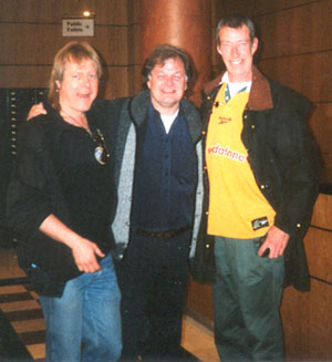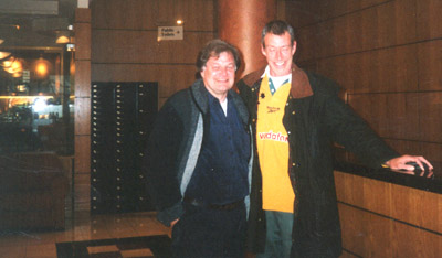 In the lobby at Jury's Hotel, scene of much Procol hanging-out, Hans is pictured with Procol's Dave Ball ... |