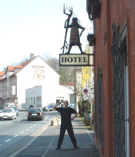 The Hotel in Aschaffenburg was called 'The Wildman' - that's Brzezicki under the sign