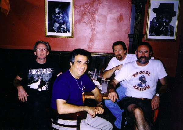 Marvellously Procol Harum then took the stage and played a five-song set on the Palers' gear. Matt had to cope with a four-string bass, Geoff with a rather long guitar-strap! Despite the late hour , and the many drinks that fans had bought them, they provided Unique Entertainment as always. |