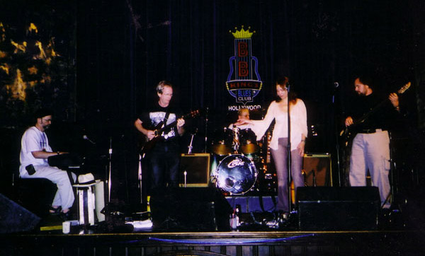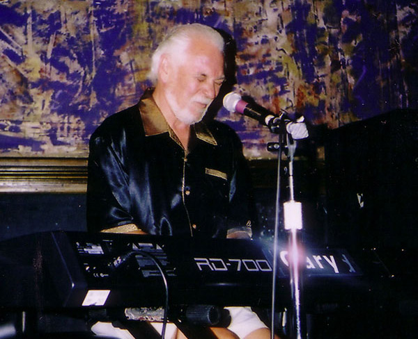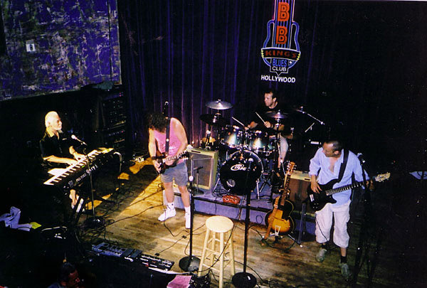 Roland at the piano, Jens on the drums, and Gary on guitar, Donna Blue at the microphone, and Paler stalwart Richard Beck, in his third Palers' Band incarnation, on the electric bass. This particular combination of personnel played only Conquistador, we think. |