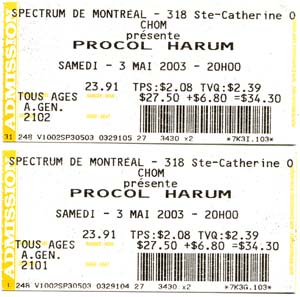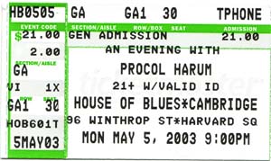 My work at Queen’s University, fortunately, calls for me to spend time in Spain and in Latin America, where I research and write about the conquistador legacy Procol Harum sing about in one of their most memorable songs. Spending part of February in Seville and part of March in Guatemala certainly helped take the bite out of winter in Canada. The warmth felt good and all the while the glare of the sun most welcome. Occasionally I’d find a cybercafé and go online, a habitual fix being 'Beyond the Pale', the website dedicated to the appreciation and enjoyment of Procol Harum (www.procolharum.com). There I’d learn about my fellow travellers, both the band whose music sustains me and the family of fans who, like me, follow Procol Harum (whenever circumstances permit) to wherever a live performance is scheduled. As I surfed through our diet of news my delight at being in warmer climes was tempered by the knowledge that where I was in early 2003 did not coincide with the feast of gigs arranged to showcase the release of Procol Harum’s twelfth album, The Well’s On Fire. I drooled and grew frustrated when I read about the tour planned for northern Europe, beyond the pale even for an itinerant geographer (and Procol pilgrim) like myself: this world is rich, but not always is it mine. Then came the announcement that the band would play a suite of venues in North America between May 3 and May 11, shortly after my return to Canada. The signpost began to sign. I looked at the calendar, rejigged my work load, and lined up six shows in eight days, a week before my birthday. What a treat!