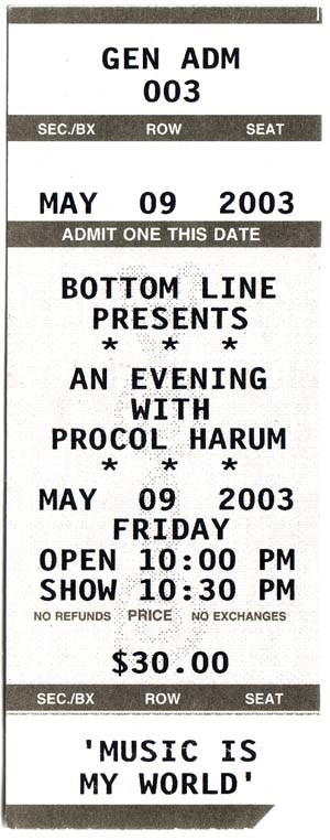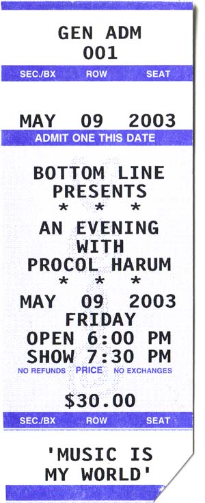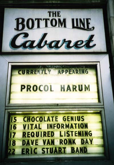 I nodded. My amigo from Argentina, Tito Davila, had picked me up a ticket for the late show that Procol Harum were to perform. Gaining entry to the early show, however, had meant a flurry of emails and telephone calls to the Bottom Line just prior to my departure for Guatemala.