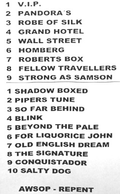 'I wonder who wrote the setlist?' asks Dr Holger Neumeyer, who has not missed a Procol gig in Hamburg since 1968. 'He never heard of Homburg, neither the song nor the hat.' In fact the setlist is generic and has been seen at many gigs on this tour. Has it ever been followed? |