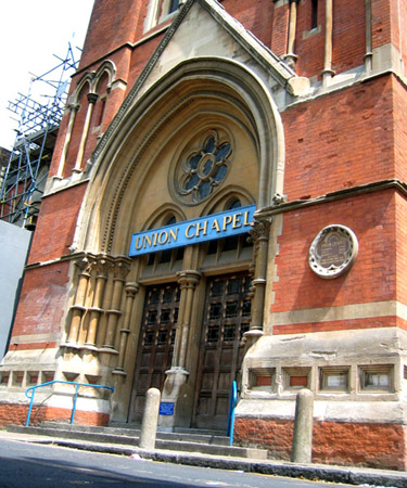 This plaque shows something of the history of the Union Chapel where Procol Harum will play on Friday 12 December 2003 |