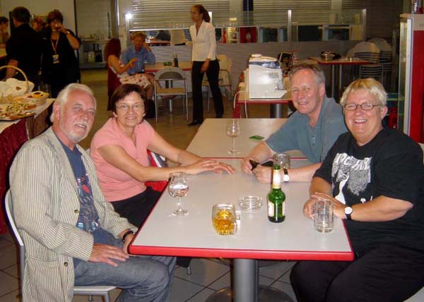 Gary enjoys a drink with Mac Gajda and his wife Ewa, from Poland, and Titti Ravnaas, from Norway |