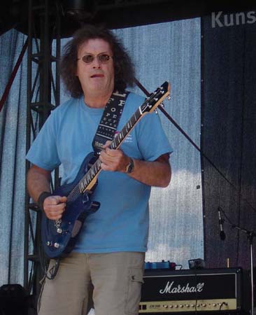 Geoff with his new Variax 700. For the Italian gigs he took a conventional guitar as backup, but for Vienna he was confident it had proved itself, and it travelled as his sole instrument. |
