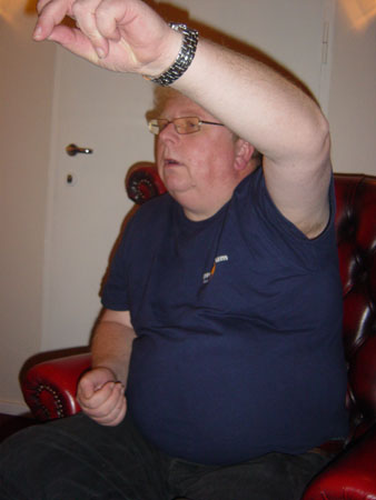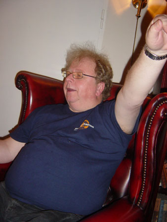 Geoff ('Betty Ford Clinic') obliquely occupying his seat