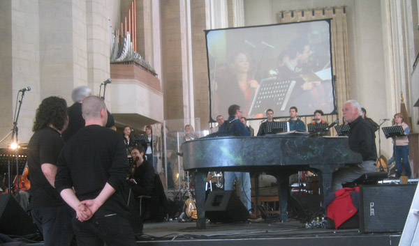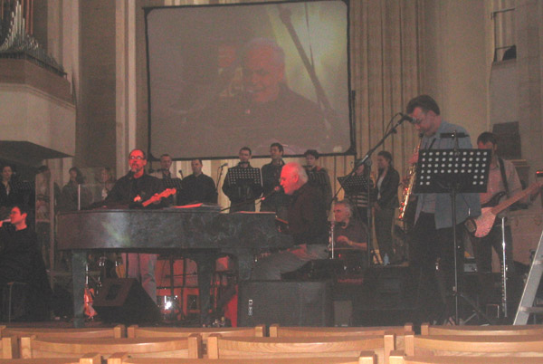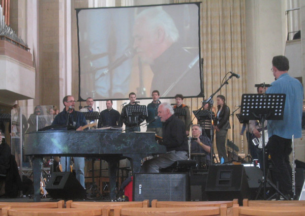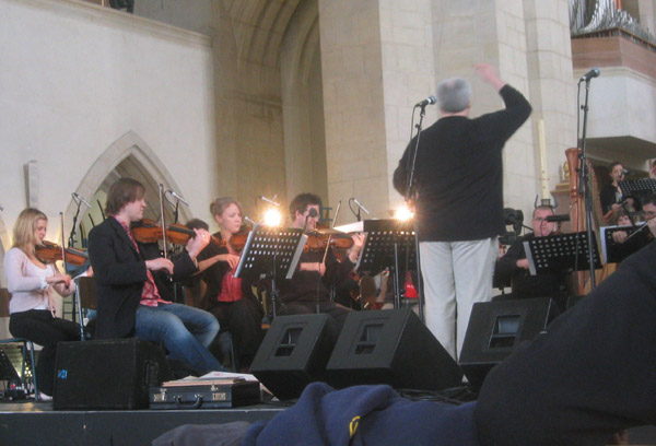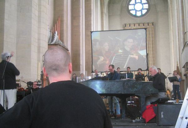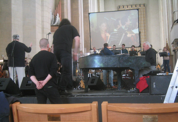 Jeremy, on the organ, is simply not visible up in the loft to the top right of the picture