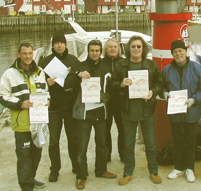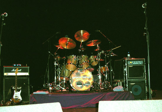 Enøye adds: great atmosphere, sensational concert, ovations every number from dozens of fish-workers. But of course disappointing it had to be cut short due to weather. I always thought such things only happened in Los Angeles. The power outage was not such a disappointment since drums are my favourite instrument. I had a great time hanging with the band and had my photograph taken in the dark with almost every one of them in turn. Gary told me that he had written several numbers for his new solo album on the way across the Straits in the morning. Mark and Josh revealed that they are working on another project together, this time with Keith West, to finish another excerpt from his Teenage Opera, which was started before either of them was born. Geoff vouchsafed to me that he has joined six more weekend bands to play R&B covers in the Gravesend area. Matt confided in me that he is indifferent to certain kinds of sprats and anchovies. Keith was talking to one of the fishgutting apprentices but he did shake my hand briefly. The sound crew invited me to the Fishing-Master's cabin for the traditional glass of Aquavit that is consumed every time the ship crosses the Arctic Circle; I waited a while but nobody else turned up. Consequently I missed the first four or five numbers from the set but the crew informed me that they were mostly new songs including That's the Way to Do It, Crocodile Tears, Not So Much a Sausage, and several other titles in a language that Keith Reid has made up, called Luskuspeak, which sound too rude to write down on a respectable webpage. More from me in a few minutes' time. Thanks, Enøye |