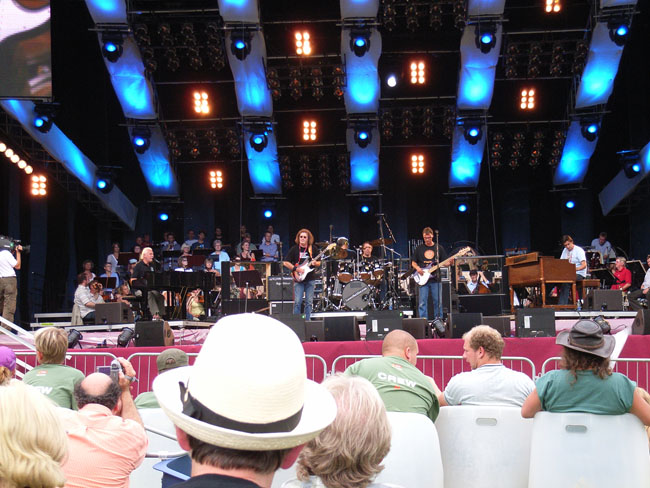 From further back, Josh Phillips on Hammond organ is also visible, stage left