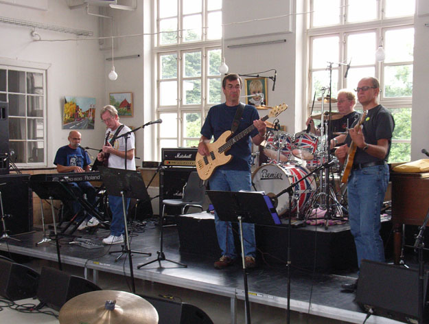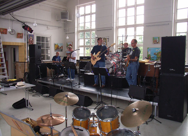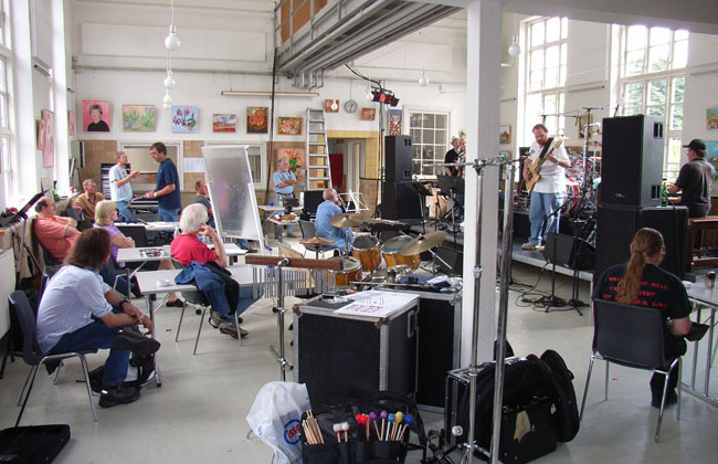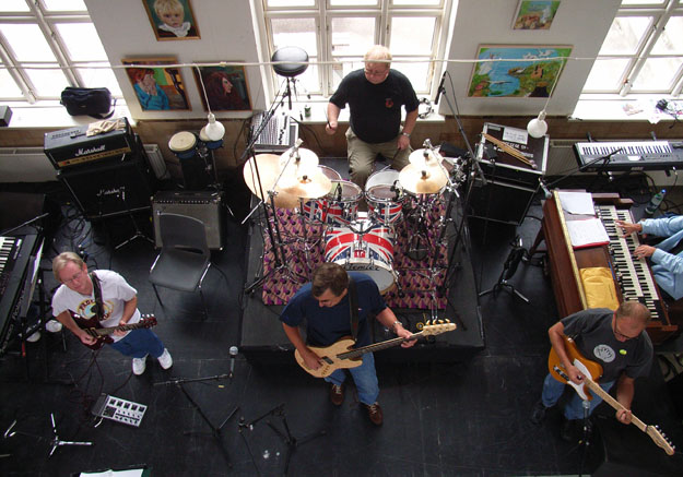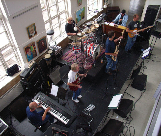 stand to rehearse with The Palers' Band.