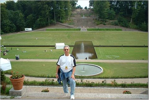 Jeff with the Ledreborg site behind him: next day it would be full of Procol fans