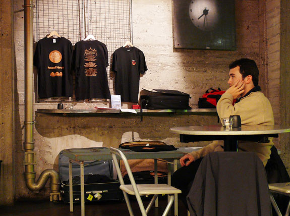 | 1 | Non-original song | Nice gig in a nice venue; very full but perhaps not quite to the 1,100 capacity. Standing audience included Jens Hofman (Ledreborg supremo) and one fan who had come all the way from Argentina: Patricio Duran, pictured sitting patiently waiting next to the merchandise. Photographer Thomas Raa Olsen suggested the caption below: | ||||