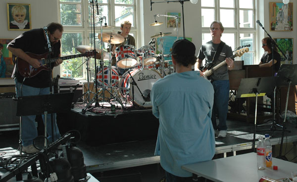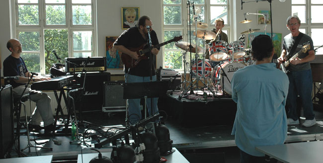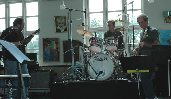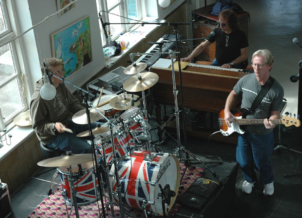 Richard and 'Shep': Peter sitting in on drums to help us find the groove for No More Fear of Flying