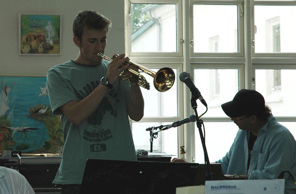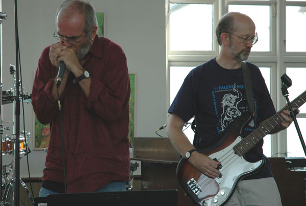 Finn on mouth harp, Roland on bass in his Palers' Project tee-shirt