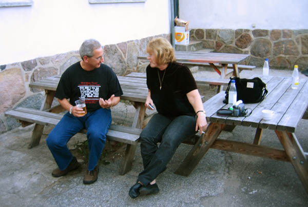 Jeff Levine outside in the courtyard with Jill McMahon, from Los Angeles