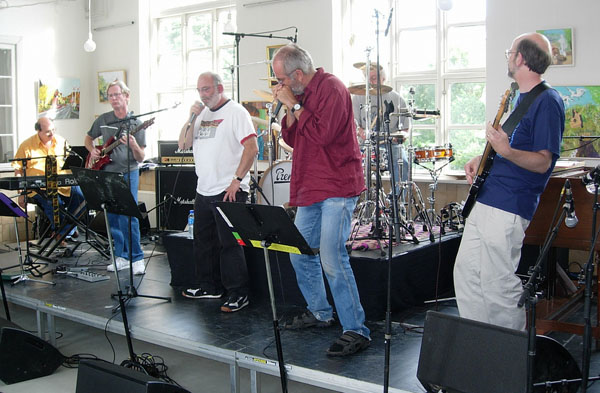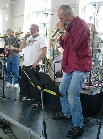 'Shep', 'One-Eye', Marvin on drums and the excellent local harmonica-player Finn who stopped by to play Juicy John Pink in rehearsal