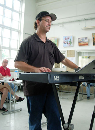 Jeremy directing The Worm and the Tree from the Korg N5 synth