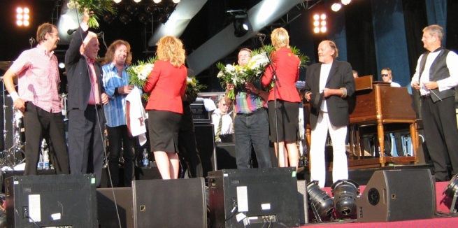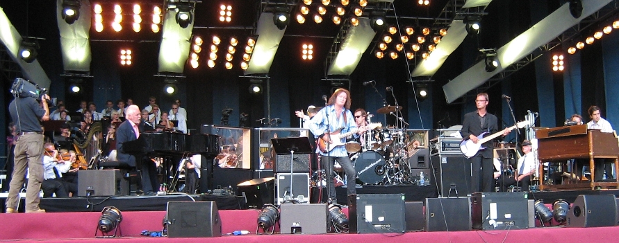 The next surprise was enjoying the support act – two popular Danish entertainers Povl Dissing and Benny Andersen (no, not the guy from ABBA) singing sentimental folk-songs. Povl wore a homburg and some of the songs had Procoloid snatches – a Hispanic introduction sounded like Conquistador and one waltzy number was a distant cousin of Grand Hotel. The audience loved them and it was easy to see why – the schmaltz was beautifully constructed and played. I quietly hoped the orchestra and chorus would cope just as well with the Procol stuff to come.