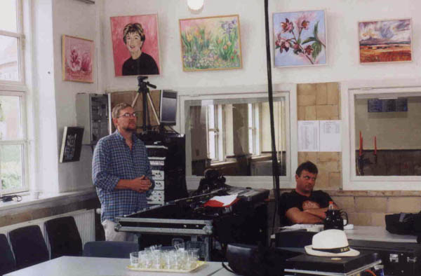 Sunday Paling rehearsals, 9 am. Thomas at the sound desk ('Is it on?'). Andrè in a moment's repose.
