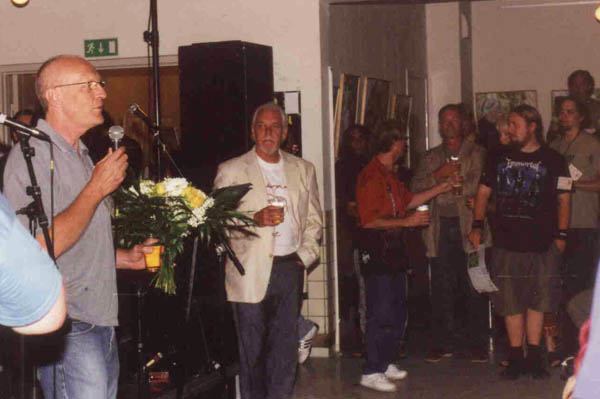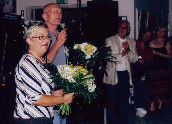 At the Palers' Revels: Gary presents flowers to our admirable Danish host, Henrik Gøttrup