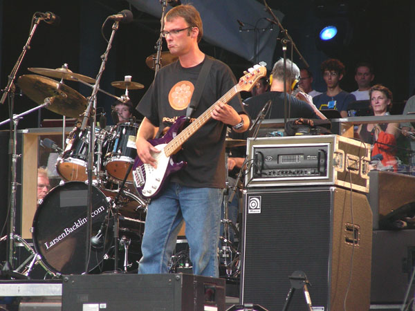 Matthew Pegg with his five-string bass and rig. Conductor, behind, with the