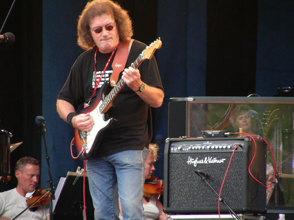 Geoff with his Strat and Hughes & Kettner combo (separated from the strings by a Perspex screen)