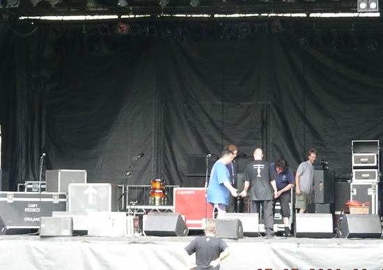 Soundcheck – Jonny, Ron, Graham, and a couple of locals setting up the equipment