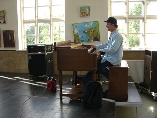Jeremy Gillien trying the B3 Hammond and Leslie 147 that BtP rented from Soundforce. He was very pleased with it. |