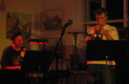 Peter on muted trumpet and (unseen) Jeremy Gilien on Hammond and shared vocal complete the ensemble