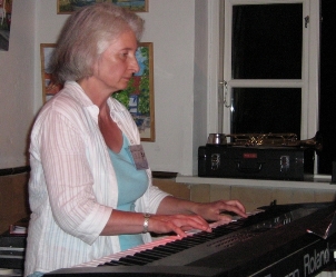 The Palers kicked off with Roland Clare and Linda Clare on concert marimba for Pandora's Box. We progressed through many fluid changes of cast, with the pixie impresario turning up on keyboards one minute, bass guitar the next, then doubling on woodwind with son Peter. Meanwhile stage left Ma was playing with another Roland (RD 600 piano).