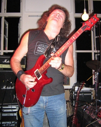 The Harum happily decided the house band needed a break and got tuned up on the Palers' instruments with Geoff sporting a newly-acquired AWSoP tee-shirt. They gave us excellent three-song set A Rum Tale, Skip Softly, and Bringing Home the Bacon lighthearted and easy with everyone playing well, a wonderful bonus for us all. Geoff told me that after seeing Rob Trower playing a storm in concert, he had been in touch with him to talk guitar stuff. I had a brief minute with GB and he was delighted about my own personal health news, namely the successful treatment of my laryngeal tumour.