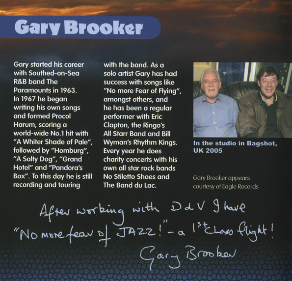 After working with DdV I have 'No more fear of JAZZ!' – a 1st class flight! Gary Brooker