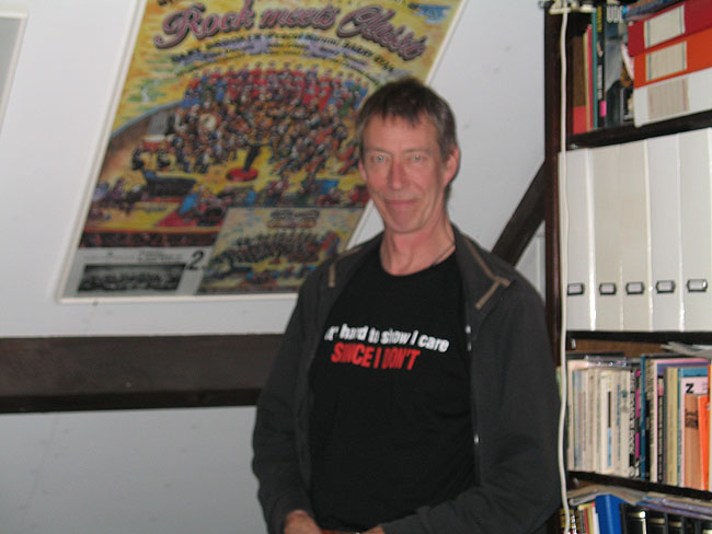 On one he is holding the Bedlam LP (UK 1973). As Cozy Powell is on it, it's very sought-after, especially in Japan, so Dave told me. At the recent record fair in Utrecht I saw a Japanese copy of the Bedlam album on sale for 350 euros! On the higher photo Dave is in front of a German 'Rock Meets Classic' poster (Gary's orchestral outing in the early nineties). You can read about the poster in my Edmonton piece. I put Dave in front of it for obvious reasons, as you'll understand. More shots from Frans's Procol museum