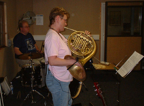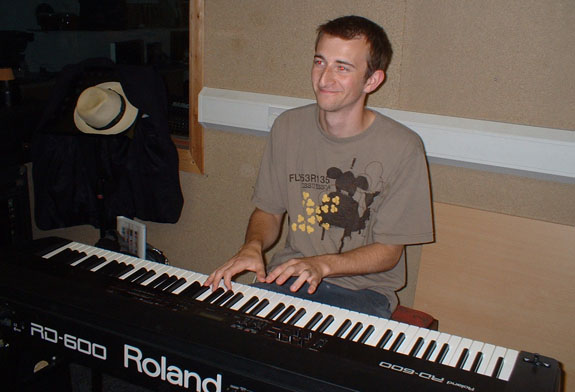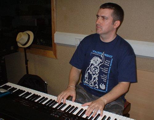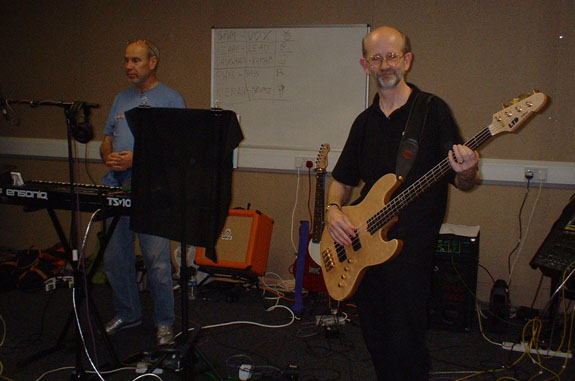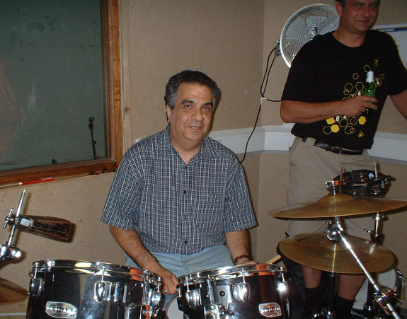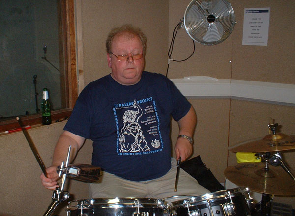 Jens Anders from BtP, drumming in Palers' Project tee-shirt