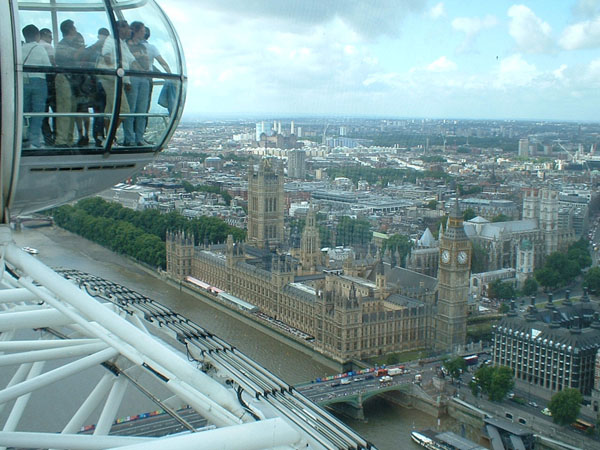 Looking towards St John's Smith Square, from the London Eye. Palace of Westminster in the foreground
