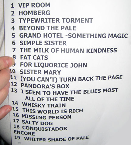 the printed setlist, shewn below, as were The Milk of