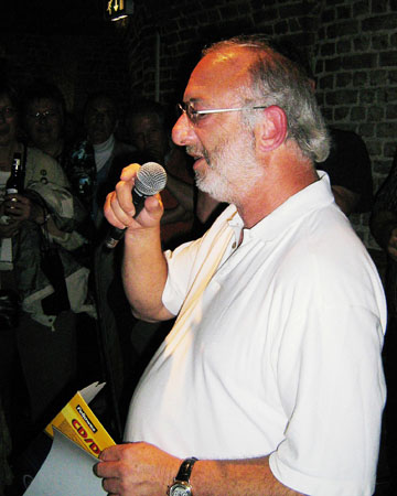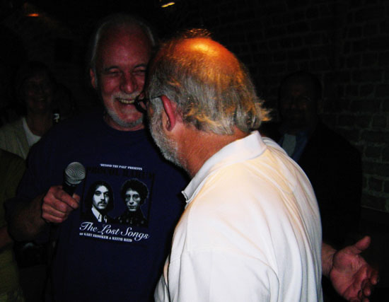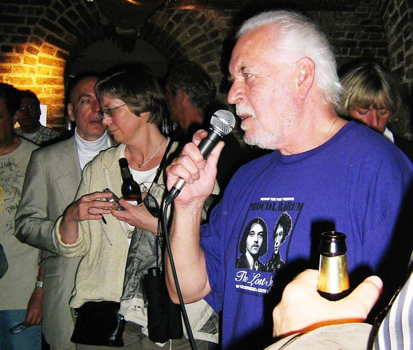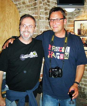 Dave Ball and Gary Brooker. Chuck Pitluck from the USA glances up at the towering Mr Ball
