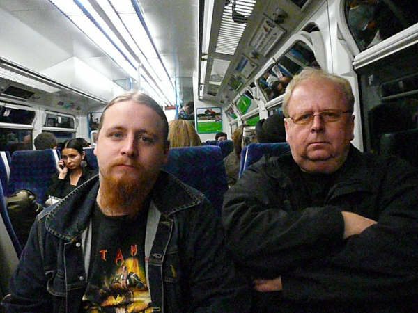 On the way to the show: two wrestlers from Norway, on a train