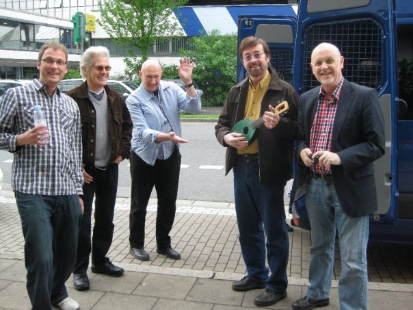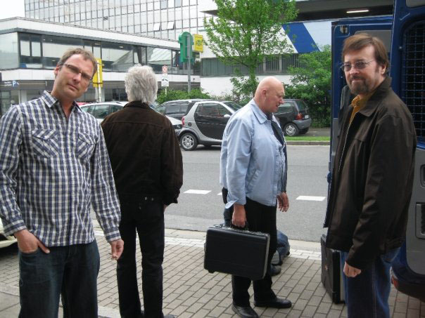 Outside the hotel ... Matt Pegg, Ray Jackson, Keith Hammond, Jerry Donahue