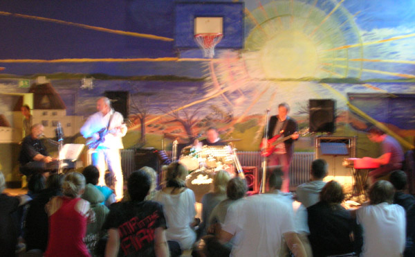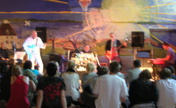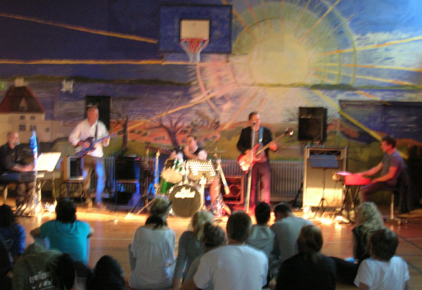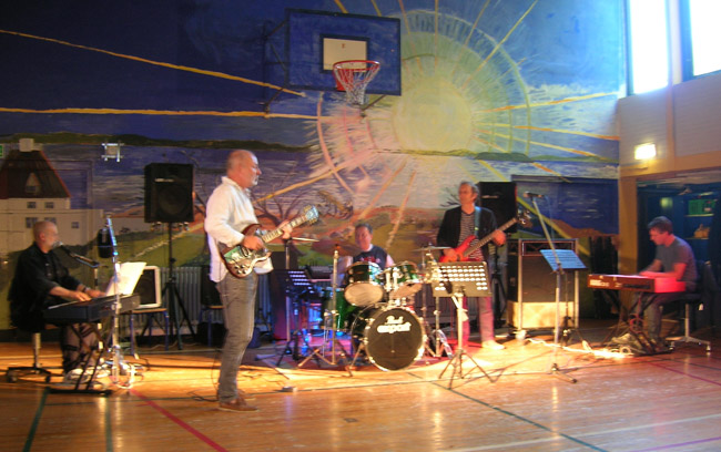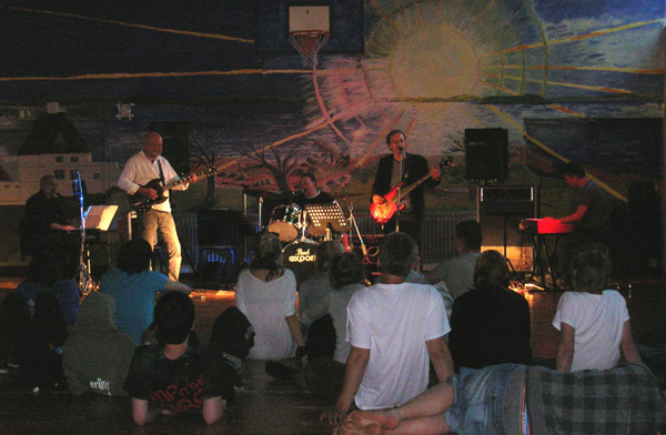 | Søren writes that this is the first time that whole band plays together with their well-known new organist, Søren Sadolin. The gig is '... a private session at the boarding school where I work; we use the music classroom for our rehearsals, and therefore we always give a free concert for the pupils once a year. Until now only some of us have played with Søren S, but tonight we shall be there all of us together.' | |||||