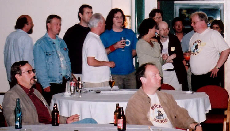 Throng at the Party, while the films show. Franky asking Roland to identify some detail of the recording … |